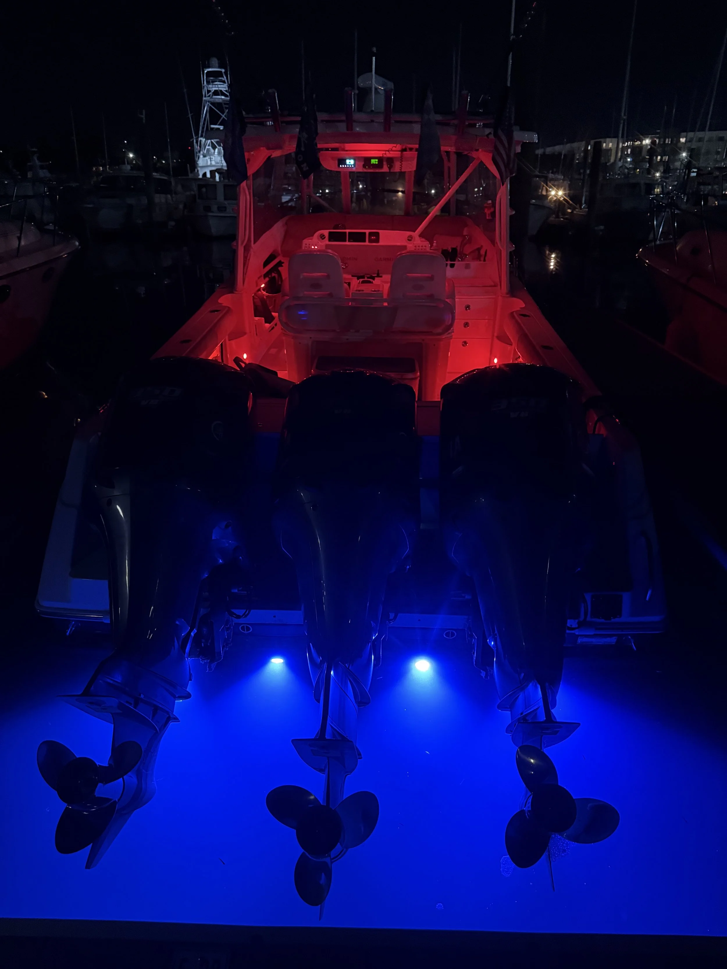 Installation of premium marine audio systems, LED lighting, and underwater lighting upgrades.